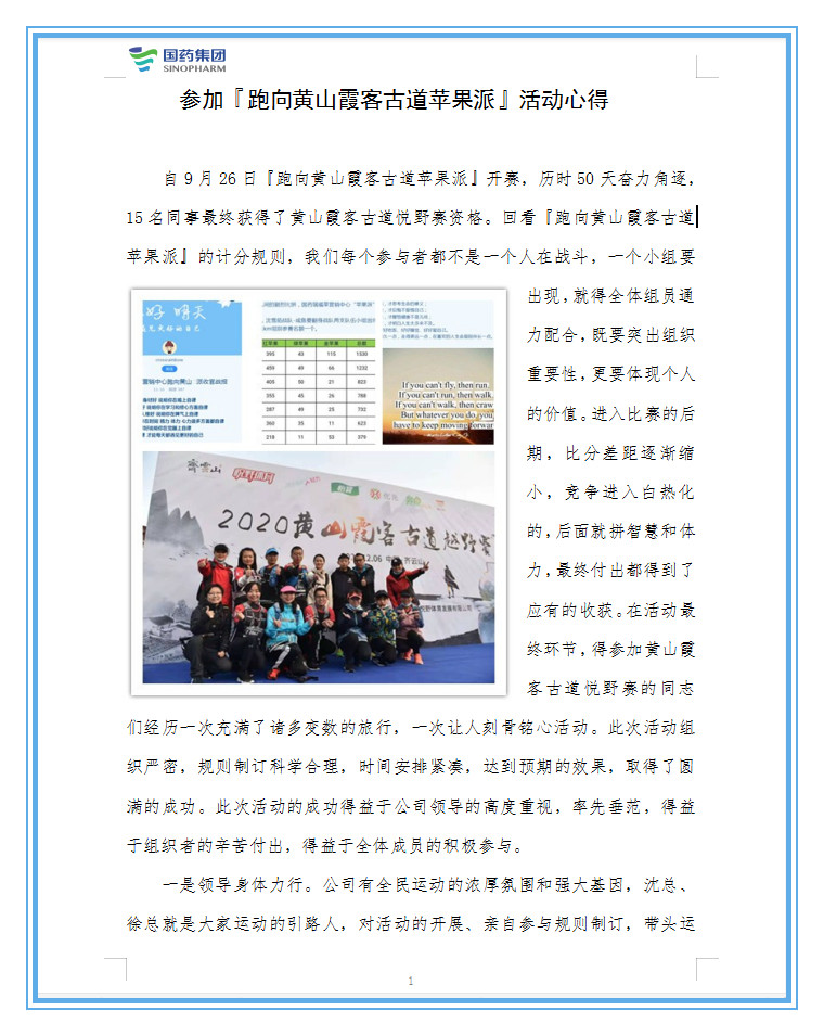 参加『跑向黄山霞客古道苹果派』活动心得 大生产中心:李建朗
