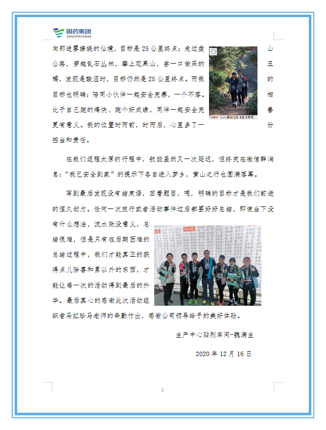 黄山之行,目标之行 贴剂车间:魏满生